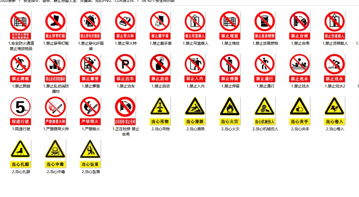 安全标识牌警示警告消防标志工厂仓库生产车间严禁烟火禁止吸烟当心触电有电危险工地施工提示矢量图
