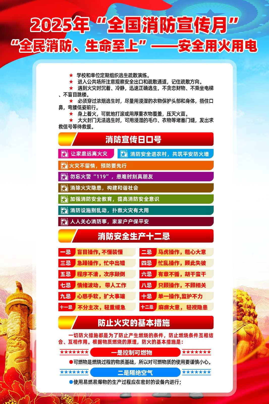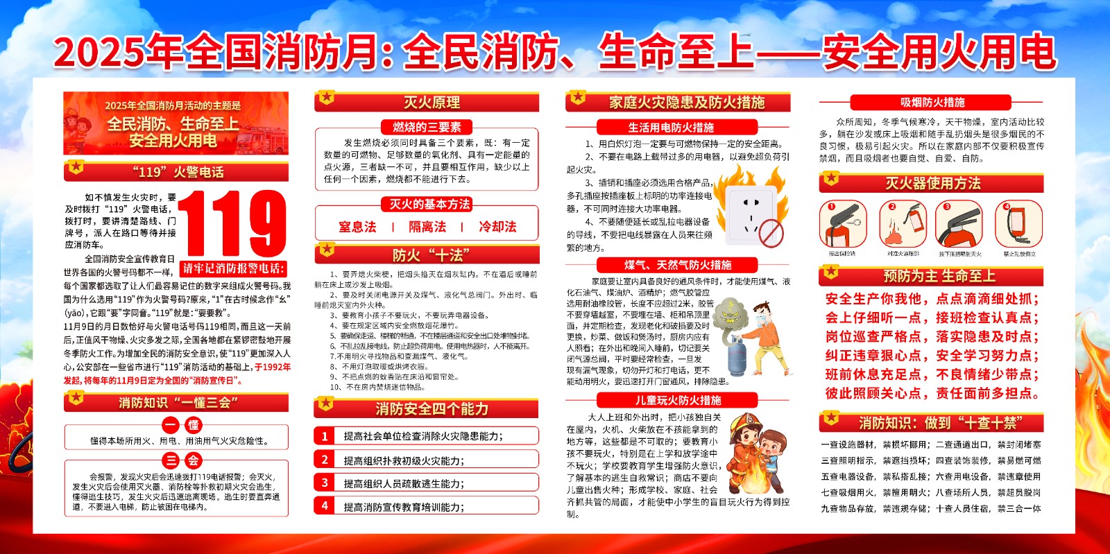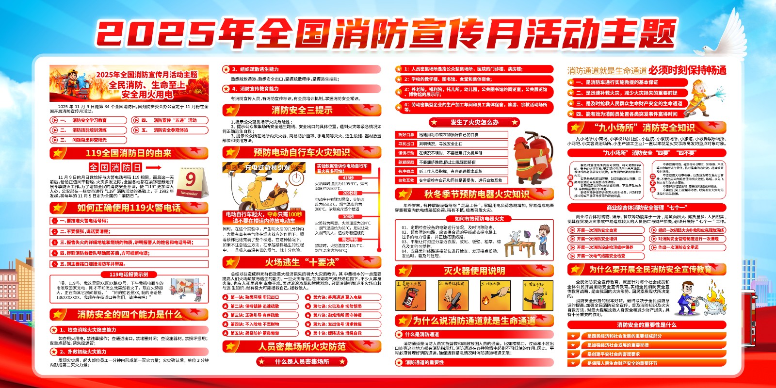 2025年消防宣传月主题海报119消防日教育海报 【高清图+PSD原版文件】